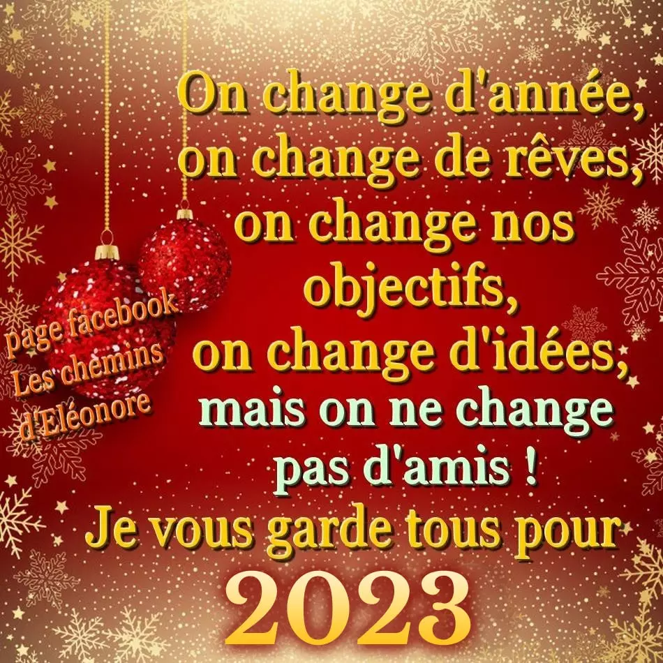 Des décorations de Noël... On change d'année, on change dé rêves, on change nos objectifs, on change d'idées; mais on ne change pas d'amis ! Je vous garde tous pour 2025. Link: Code HTML: BBCode: Plus d'images de Bonne année Images Similaires