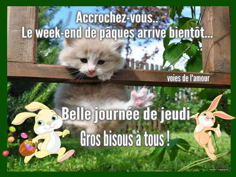 Accrochez-vous... Le week-end de pâques arrive bientôt... Belle journée de jeudi. Gros bisous à tous !